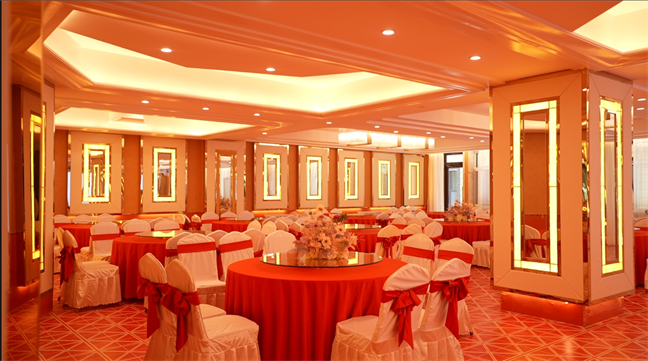 永利宮—優(yōu)雅大氣、雍容華貴,位于大酒店北樓一層,面積392㎡,可承接20桌的中小型宴會。